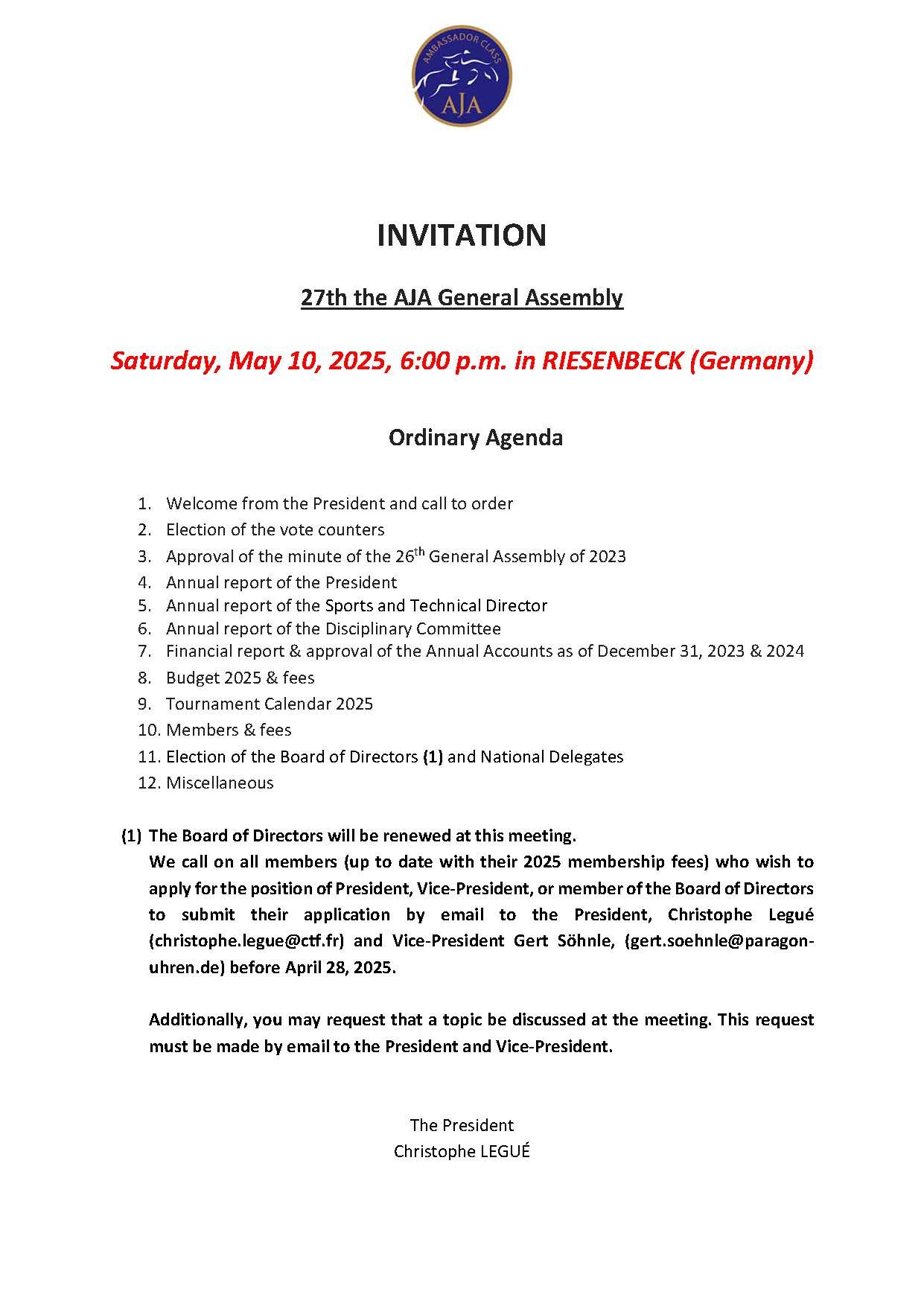Algemene vergaderingen van AJA op zaterdag 9 september 2023 in Hardelot 18:00 – 19:30